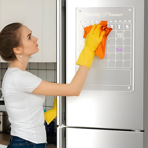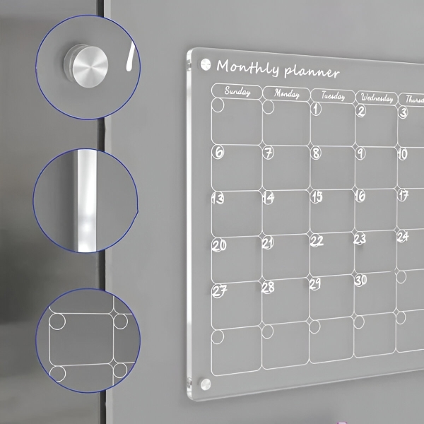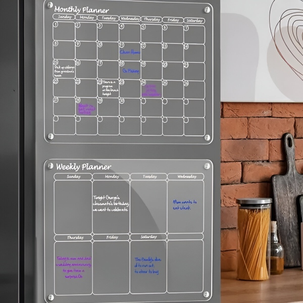 Papirnati planeri potroše se nakon mjesec dana i idu ravno u smeće. Prozirna akrilna površina potpuno se čisti u sekundi priloženom krpom – bez duhova, bez mrlja, bez ostataka. Površina je otporna na ogrebotine i mrlje, tako da ostaje kristalno čista nakon stotina brisanja.