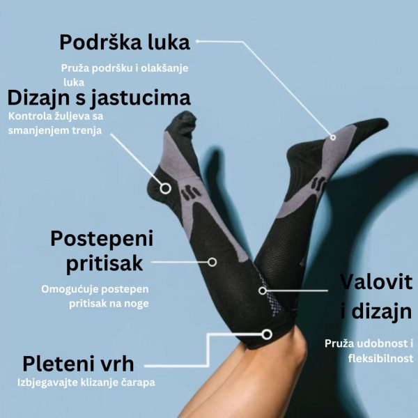 Ove čarape pomažu poboljšati protok krvi, što znači manje umora i više energije za vaš dan. Savršen za duge sate na nogama ili intenzivnu fizičku aktivnost.
