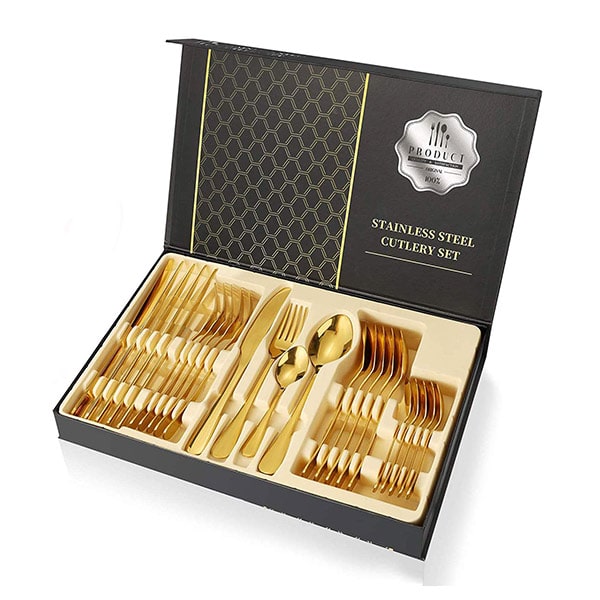 Izrađen od vrhunskih materijala, naš luksuzni set pribora za jelo obećava izdržljivost i dugotrajnu učinkovitost.