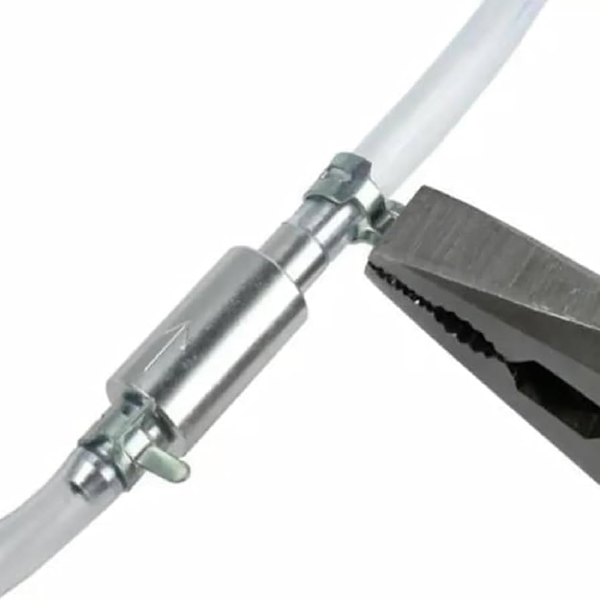 Spajanje crijeva na kočioni sustav vašeg motocikla izuzetno je jednostavno zahvaljujući priloženim kopčama. Ova brza priprema omogućuje vam da odmah započnete s postupkom odzračivanja kočione tekućine.